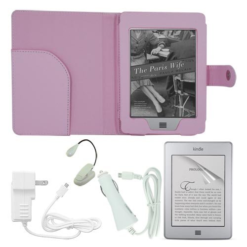 Compatible with: Amazon Kindle Touch.../ Skque 6 Inch Screen Protector+Pink Leather Case+White Booklight+White Wall Charger Adapter+White Car Charger Adapter For Amazon Kinlde Touch / Leathers