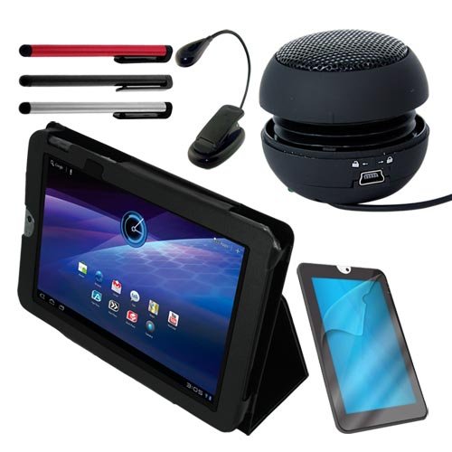 Compatile with: Toshiba Thrive 10.1 Tablet.../ Skque Screen Protector+3 Color Stylus Pen+Black Leather Case+Black Mini Speaker+Black Booklight For Toshiba Thrive 10.1 Tablet / Leathers